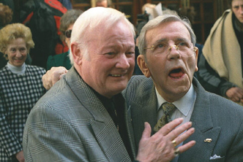 John Inman and Norman Wisdom taken at an open day at Brinsworth House, July 19th 1998. (This was one of John Inman’s favorite pictures)!